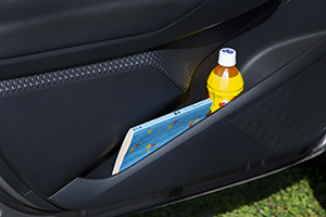 • There are door pockets on the left and right of the front seat that can store drinks with lids. Also, large guidebooks and brochures cannot be stored.