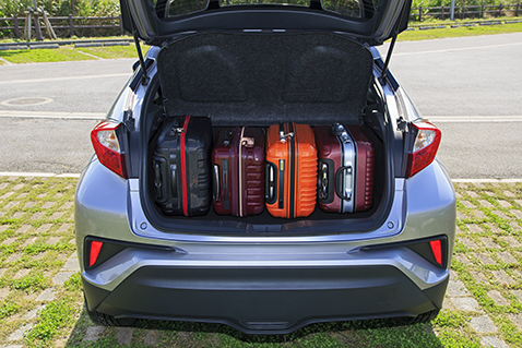 • If you do not fold the back seat, you can store one medium-size suitcase and two small-size suitcases, and have five passengers.