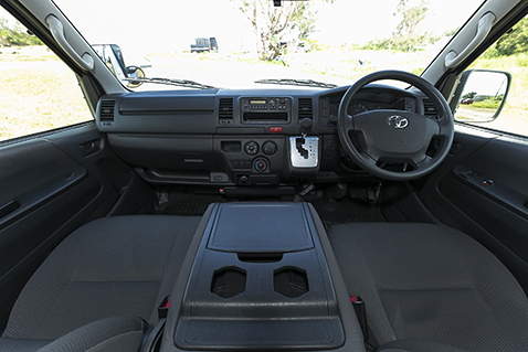REGIUS ACE is like a truck where the engine is located under the driver's seat. Therefore the height from the ground to driver's seat is high and the visibility is good. In addition, because of the sliding door, you do not have to worry about accidentally hitting the wall or the next car when parking.